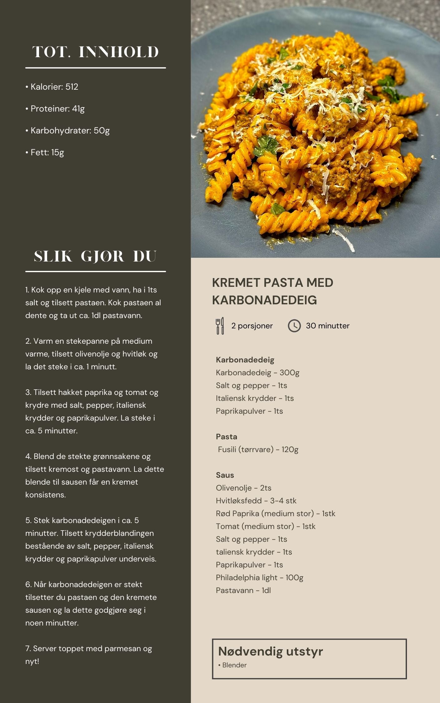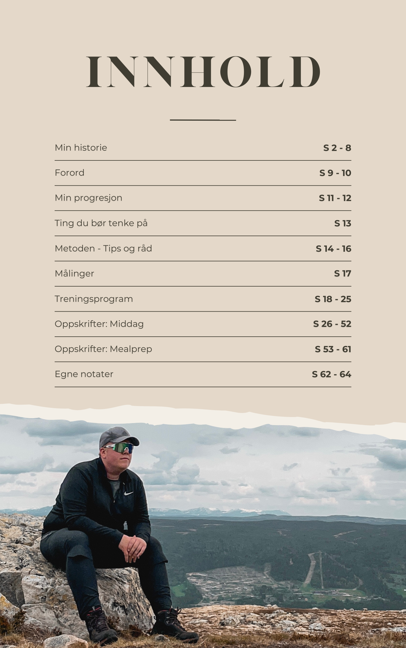 - Alle matoppskrifter jeg har benyttet meg av, og som jeg fortsatt bruker hver uke, med ferdig utregning av kalorier, proteiner, karbohydrater og fett slik at du slipper å gjøre jobben selv!